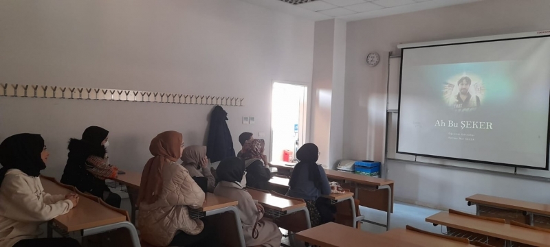 Öğr. Gör. Halime Nur SEZER'in moderatörlüğünde gerçekleştirilen etkinlikte “şekerin vücuttaki yolculuğu, şekerle alınan fazla kilonun karaciğer yağlanmasına ve sağlığa olumsuz etkilerine” yönelik bir sunum gerçekleştirildi.