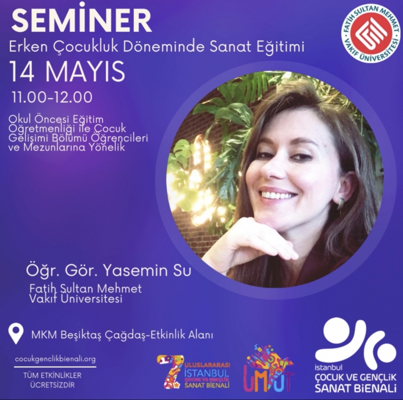 Uluslararası 7. İstanbul Çocuk ve Gençlik Sanat Bienali’nde ‘Erken Çocukluk Döneminde Sanat Eğitimi’ seminer, rehberli gezi ve iş birlikleri Öğr. Gör. Yasemin SU’nun kapanış konuşması ile tamamlandı.
