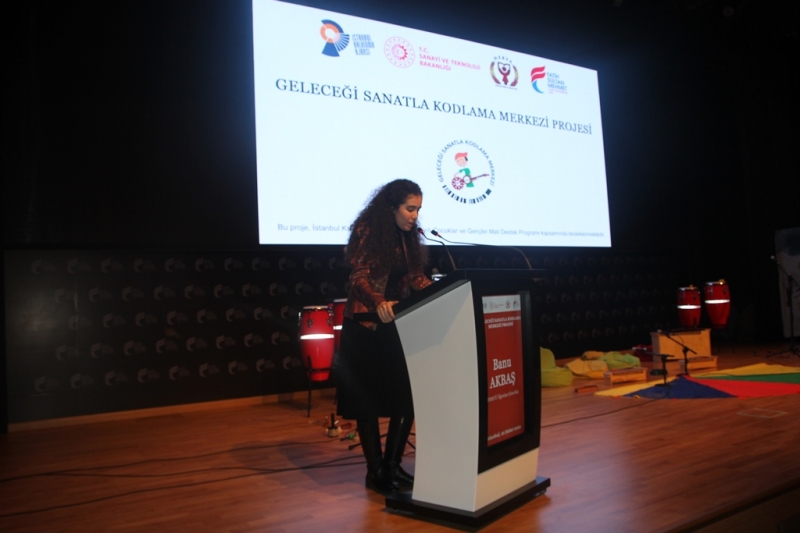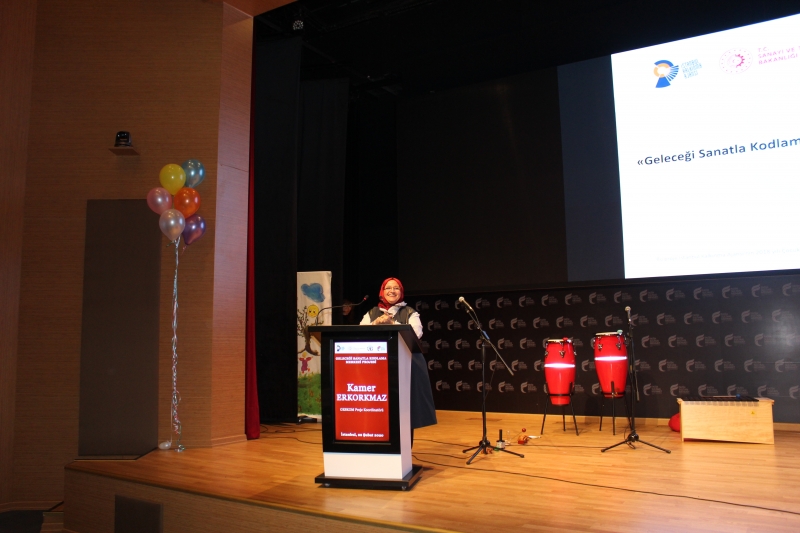 Proje bünyesinde eğitim vermek amacıyla GESKOM-Geleceği Sanatla Kodlama Merkezi kurulduğunu ve merkezde uygulamaların iki atölyede gerçekleştiğini anlatmıştır. Bilişim ve Ahenkli Tınılar Müzik Atölyelerinde 86 çocuğun eğitim aldığını ifade etmiştir.