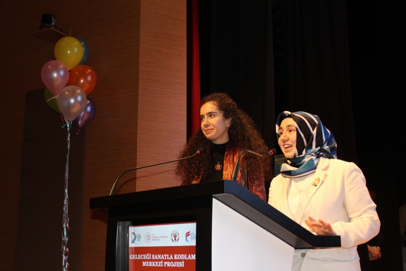 Bilişim Atolyesi eğitmeni İlker Özman çocukların yaş aralığına uygun olarak kodlama programı olarak Scrach eğitimi verildiği ve maker kapsamında Robotic, Lego, 3D printer Arduino eğitimleri verildiğini paylaşmıştır. Tören çocukların sertifika alımları ile nihayete ermiştir.