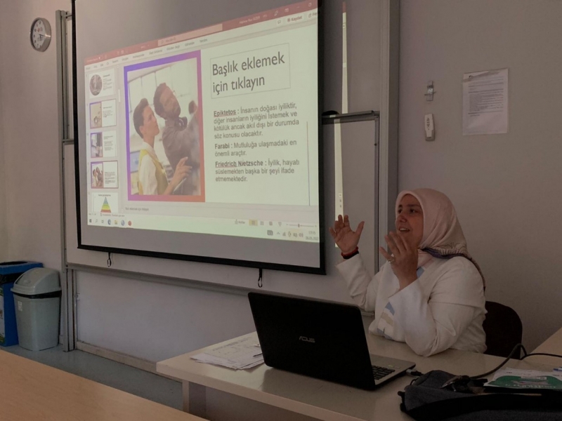 Üniversitemiz Çocuk Gelişimi Programında görevli Öğr. Gör. Halime Nur SEZER'in moderatörlüğünde gerçekleştirilen etkinlikte “sosyal sermaye olarak iyilik, iyilikseverlik kavramı: terminoloji ve tipolojisi ve gönüllülük kavramına” yönelik bir sunum gerçekleştirmiştir. Bu dönem için hazırlanan öğrenci projeleri sunularak grupla paylaşılmıştır. Duygusal anların yaşandığı etkinlikte iyilik yapmanın insanın ruh sağlığı üzerine olumlu katkıları göz önüne serilmiş ve iyiliklerin artırılmasına bir yol açılmıştır.