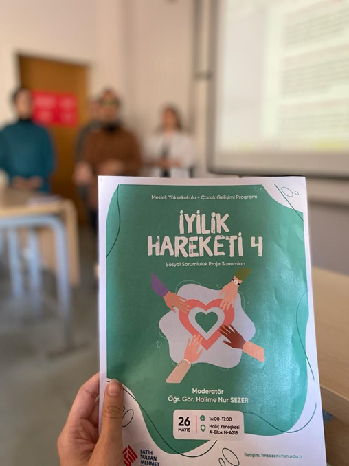 Fatih Sultan Mehmet Vakıf Üniversitesi Meslek Yüksekokulu Çocuk Gelişimi Programı tarafından düzenlenen “İyilik Hareketi 4” adlı etkinlik 26 Mayıs 2022 tarihinde Çocuk Gelişimi Programı öğrencilerimizin katılımıyla gerçekleştirildi.
