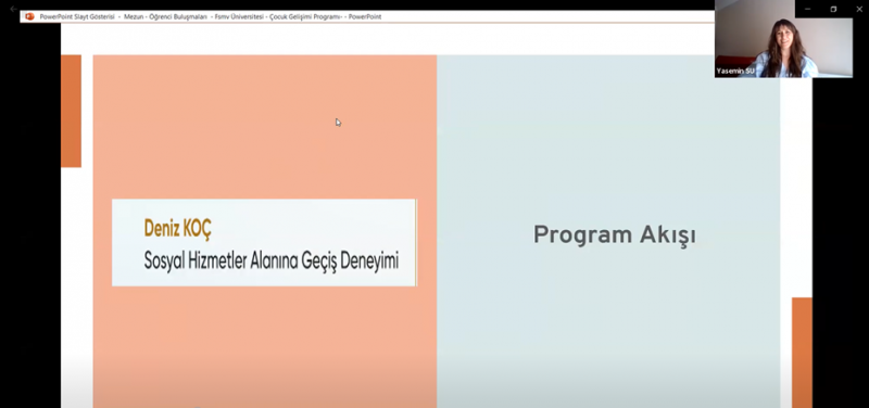 Fatih Sultan Mehmet Vakıf Üniversitesi Meslek Yüksekokulu Çocuk Gelişimi Programı tarafından ilki gerçekleştirilen Mezun-Öğrenci Buluşmaları Paneli 04 Haziran 2021 tarihinde Zoom Meeting üzerinden Öğr. Gör. Yasemin SU moderatörlüğünde gerçekleştirildi.